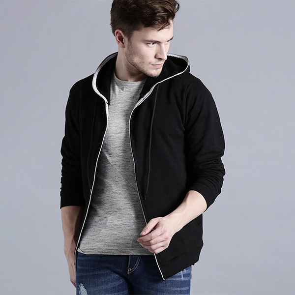 Men Black Solid Hooded Sweatshirt