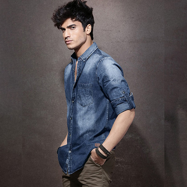 Blue denim washed casual shirt, has a spread collar, a full button placket, long sleeves with roll-up tabs, chest pocket, curved hem The article ages uniquely as you treat it, acquiring your personalised feel.