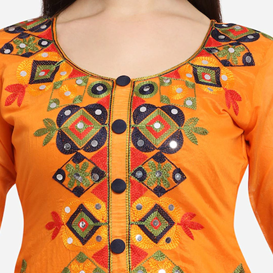 Women Orange Unstitched Dress Material
